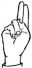 На ћирилици написано МИРЈАНА ШЋЕЛОВИЋ састоји се из 15 слова [?]. Исписано ћириличном једноручном азбуком за глувонеме: